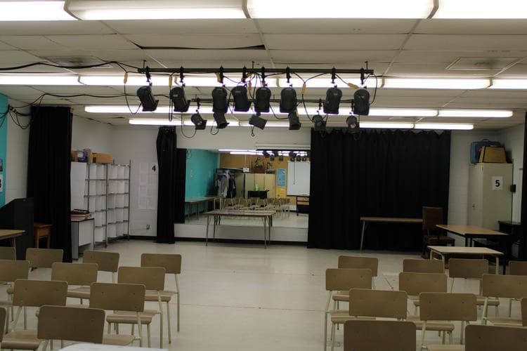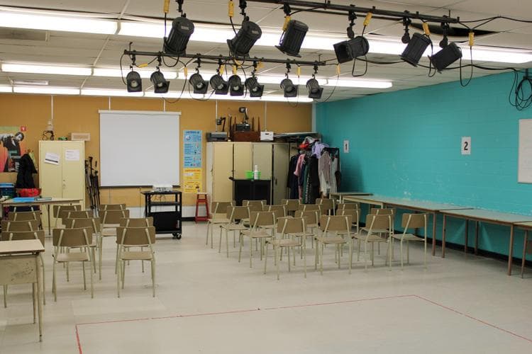 Les locaux d'art dramatique ont chacun un grand miroir installé sur un mur afin de se voir performer. Des lumières de scène permettent de présenter les créations, bien qu'il arrive que ces présentations se fassent à l'auditorium.