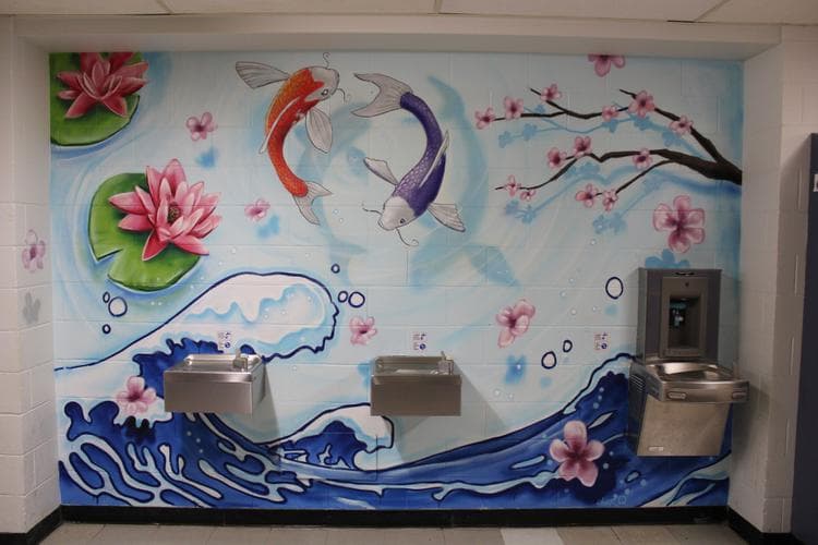 De très nombreux œuvres d'art sont exposées dans les couloirs, la grande majorité ayant été faites par des élèves de l'école.